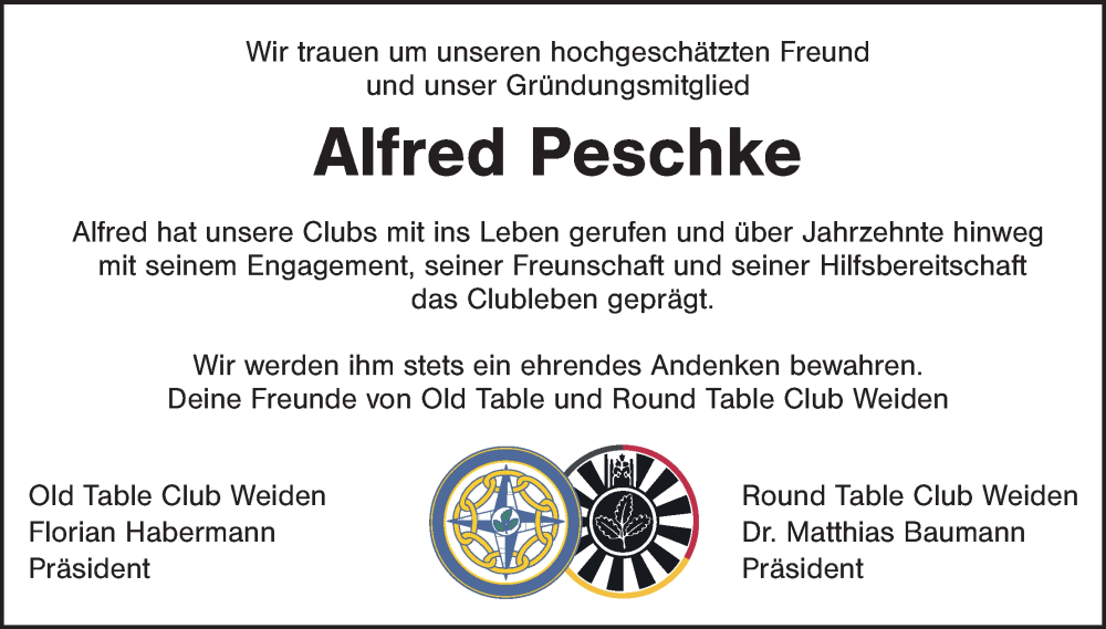 Hier finden Sie alle Traueranzeigen aus der Zeitung, die bisher für Alfred Peschke erschienen sind. Weitere Traueranzeigen, die in der Zeitung erscheinen, werden hier ebenfalls aufgelistet