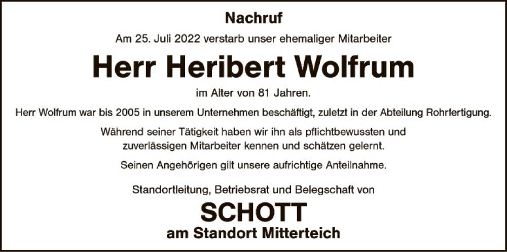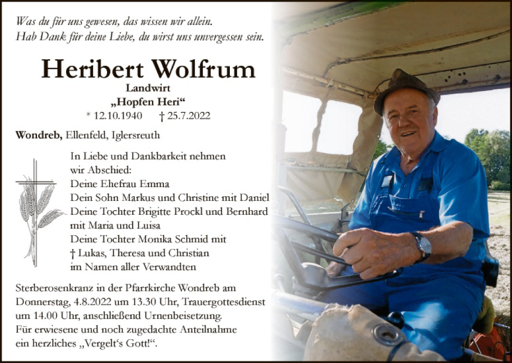 Hier finden Sie alle Traueranzeigen aus der Zeitung, die bisher für Heribert Wolfrum erschienen sind. Weitere Traueranzeigen, die in der Zeitung erscheinen, werden hier ebenfalls aufgelistet