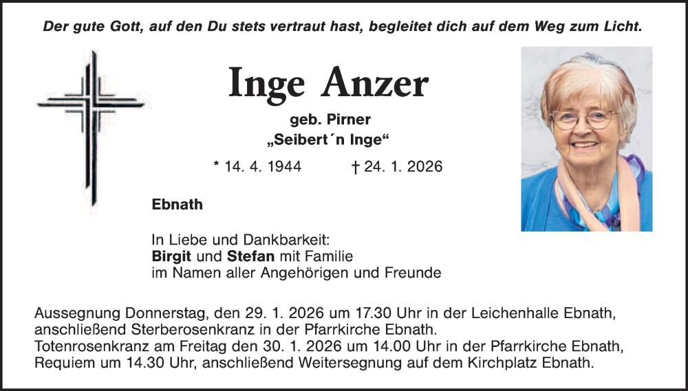 Hier finden Sie alle Traueranzeigen aus der Zeitung, die bisher für Inge Anzer erschienen sind. Weitere Traueranzeigen, die in der Zeitung erscheinen, werden hier ebenfalls aufgelistet