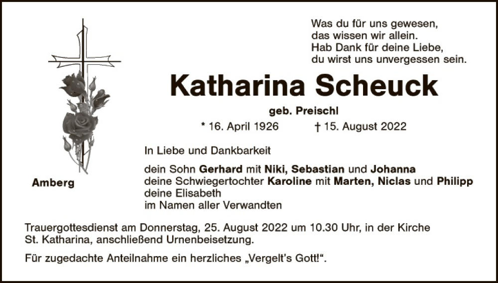 Hier finden Sie alle Traueranzeigen aus der Zeitung, die bisher für Katharina Scheuck erschienen sind. Weitere Traueranzeigen, die in der Zeitung erscheinen, werden hier ebenfalls aufgelistet