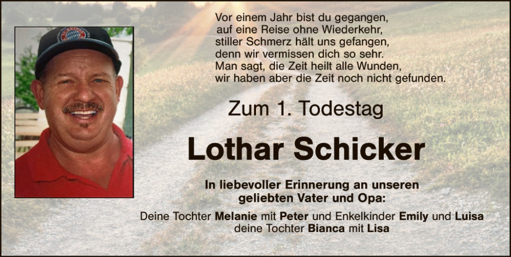 Hier finden Sie alle Traueranzeigen aus der Zeitung, die bisher für Lothar Schicker erschienen sind. Weitere Traueranzeigen, die in der Zeitung erscheinen, werden hier ebenfalls aufgelistet