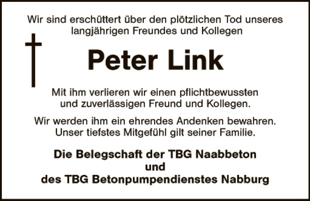 Hier finden Sie alle Traueranzeigen aus der Zeitung, die bisher für Peter Link erschienen sind. Weitere Traueranzeigen, die in der Zeitung erscheinen, werden hier ebenfalls aufgelistet