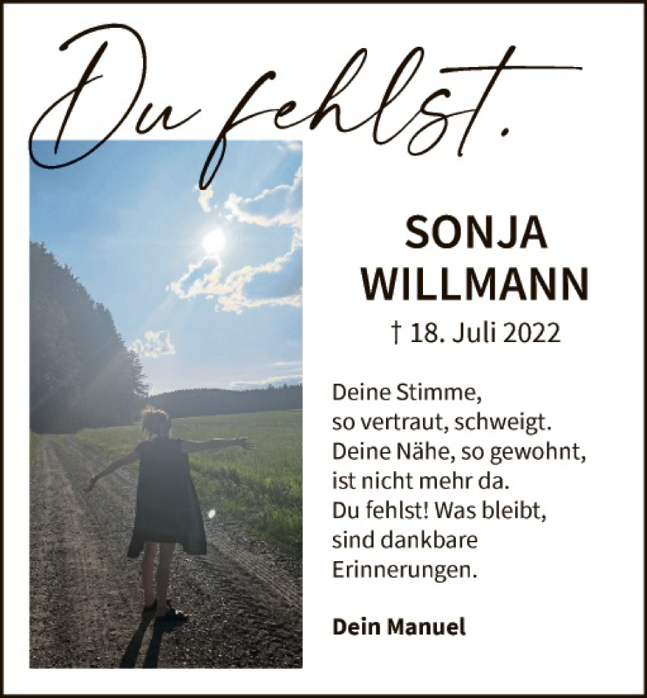 Hier finden Sie alle Traueranzeigen aus der Zeitung, die bisher für Sonja Willmann erschienen sind. Weitere Traueranzeigen, die in der Zeitung erscheinen, werden hier ebenfalls aufgelistet
