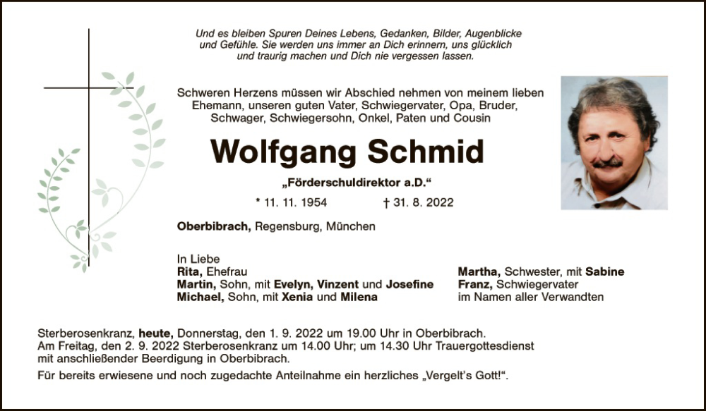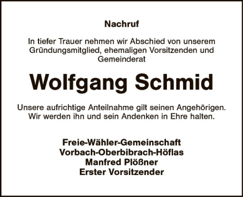 Hier finden Sie alle Traueranzeigen aus der Zeitung, die bisher für Wolfgang Schmid erschienen sind. Weitere Traueranzeigen, die in der Zeitung erscheinen, werden hier ebenfalls aufgelistet